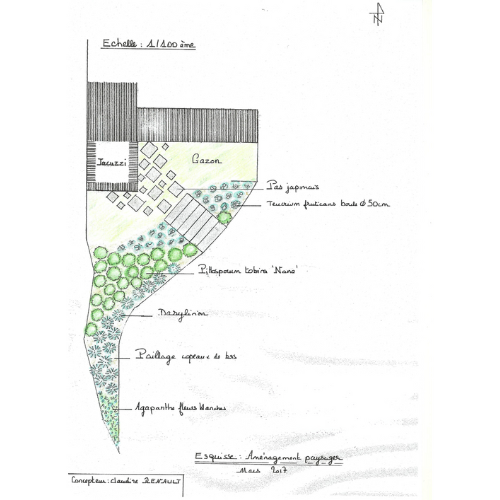 Sur la limite Est, un petit jardin Zen est proposé sous les conopées des érables existants.